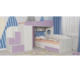 [name] => Кровать-чердак Кадет-1 с металлической лестницей Белое дерево/Розовый