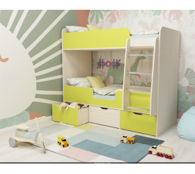 [name] => Кровать Двойняшка двухъярусная Дуб молочный/Лайм